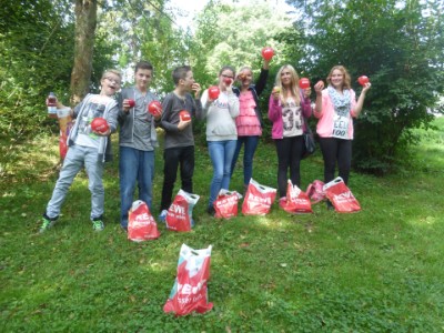 Als Erinnerung bekamen alle Schüler/innen der 7 a eine rote Apfeldose vom REWE geschenkt und Lebensmittel, wie Apfel, Früchtetee, Reiswaffeln.