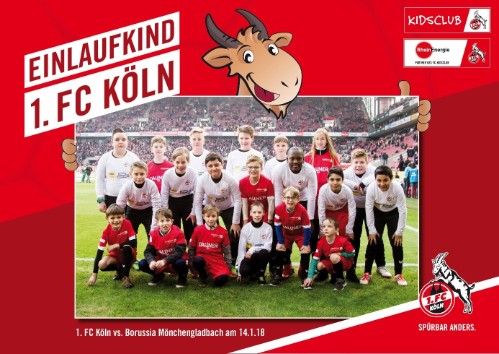 1. Platz: 2 Karten für das Fußballspiel Köln gegen Borussia Mönchengladbach am 14.01.18 + Einlaufen als Fahnenjunge